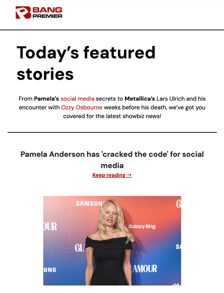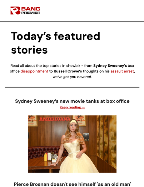 Daily BANG Showbiz newsletters I made to boost traffic towards their BANG Premiere website and engage with their subscribers. Made with Mailchimp. Click on the photos and links to view the newsletters in full.